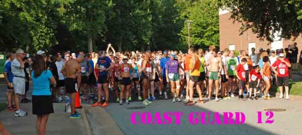 The 24th Annual Coast Guard Day 5K held at Coast Guard Training Center in Yorktown, VA on Saturday morning, August 4, 2012. The race event was organized by the Coast Guard Training Center MWR. The race itself was conducted and results were generated by the Peninsula Track Club. Conditions at race time were sunny and very humid with temperatures in the low 80s.A record 363 runners entered the 5K (up from the previous record of 327 in 2011) with a record 332 runners completing the race (up from the record of 308 in 2010). The race started near the gym on the Coast Guard base, went out the front gate onto the Yorktown Battlefield, making a loop that went downhill to the Wormley Creek Dam, then back uphill