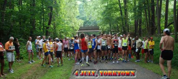 The 4th Annual Yorktown Independence Day 8K Run held on the Tour Roads of the historic Yorktown Battlefield in Yorktown, VA on Wednesday morning, July 4, 2012. The race was part of the Annual Yorktown 4th of July festivities. The race event was organized and directed by Happy Pace Races. The race itself was conducted and results were generated by the Peninsula Track Club. Conditions at race time were warm and humid and partly cloudy. Temperature at race time was around 80.The 8K race course starts on the Tour Roads near the Route 17 overpass, heads in the direction of George Washington’s Headquarters, then follows