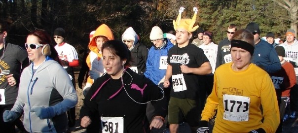 The 16th Annual Trot for Tots 5K was held at the Mariners’ Museum Park in Newport News, VA. The race was held on Thanksgiving morning, November 27, 2014. The event was organized by Happy Pace Races benefiting the Salvation Army Angel Tree program. The race was conducted and results generated by the Peninsula Track Club. Conditions at race time were cloudy and cold with a bit of rain – temperature around 40 degrees at race start.